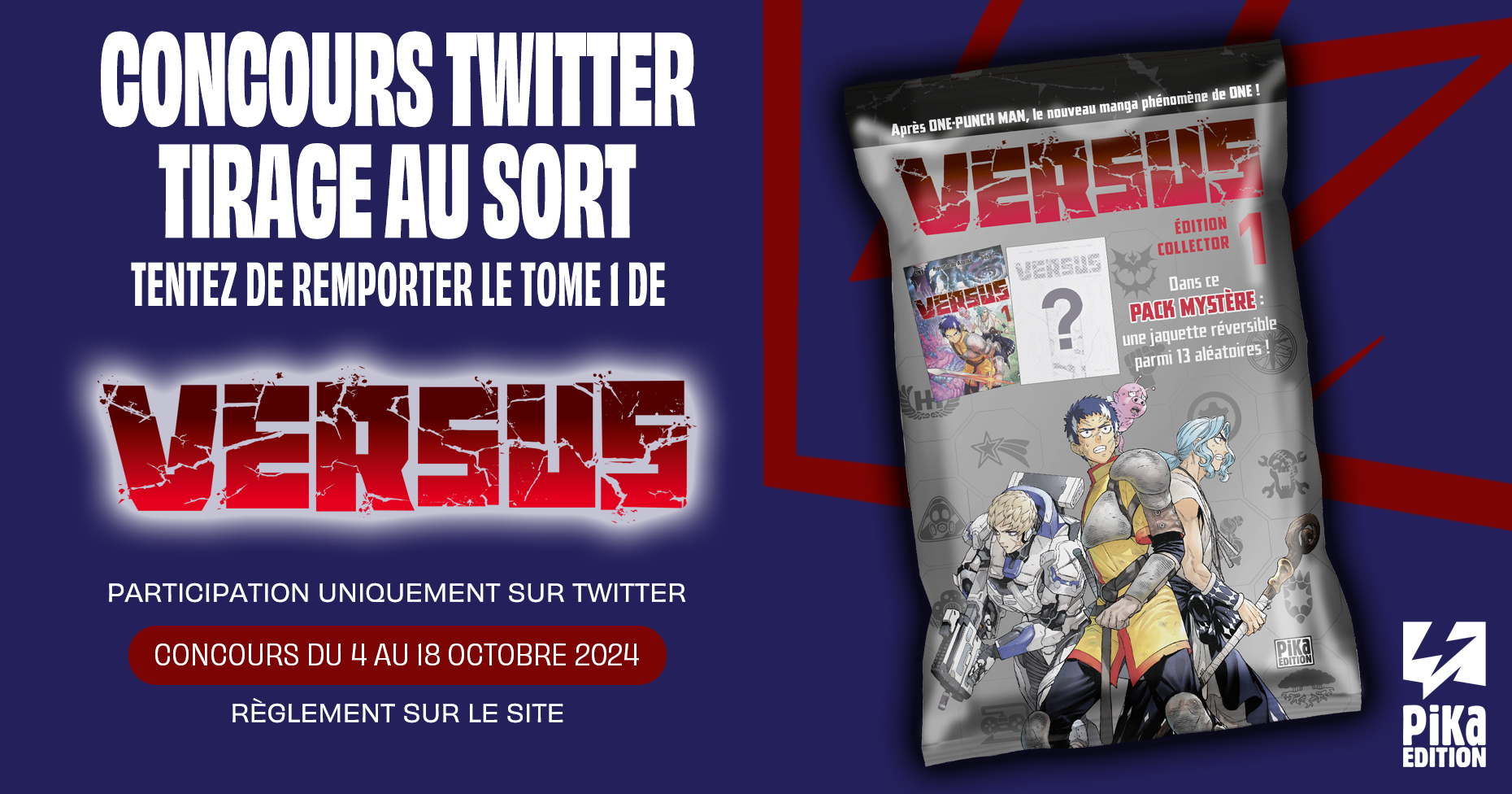 [CONCOURS] ⭐️ À l'occasion de la sortie du tome 1 de "Versus" en librairie le 9 octobre, tentez d'en remporter un exemplaire collector ! ⭐️ Pour participer: 1⃣ Abonnez-vous à @pikaedition 2⃣ Likez et repostez ce post 🔁 Bonne chance à tous !