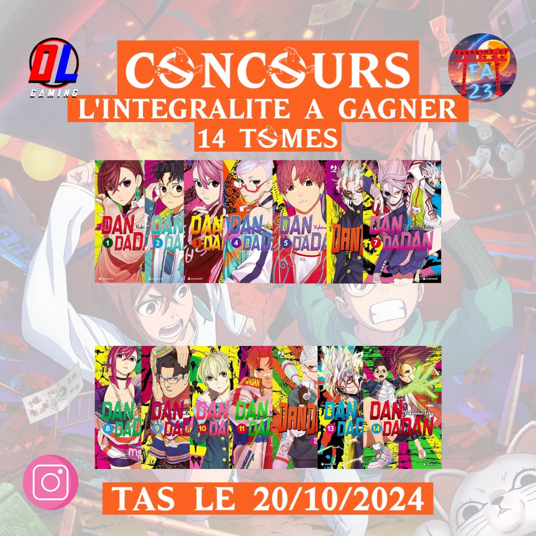 👽 Concours 👽 Pour fêter l’arrivée de @fananime_23 dans l’équipe DL Gaming on vous fait gagner les 14 Tomes de Dandadan 𝗣𝗼𝘂𝗿 𝗽𝗮𝗿𝘁𝗶𝗰𝗶𝗽𝗲𝗿 : 👽 Suivre @DLGAMING22 & @fananime_23 👽 Tag 3 amis 👽 Like & RT 👽 TAS 20/10/24 Bonne Chance à tous #CONCOURS #Dandadan
