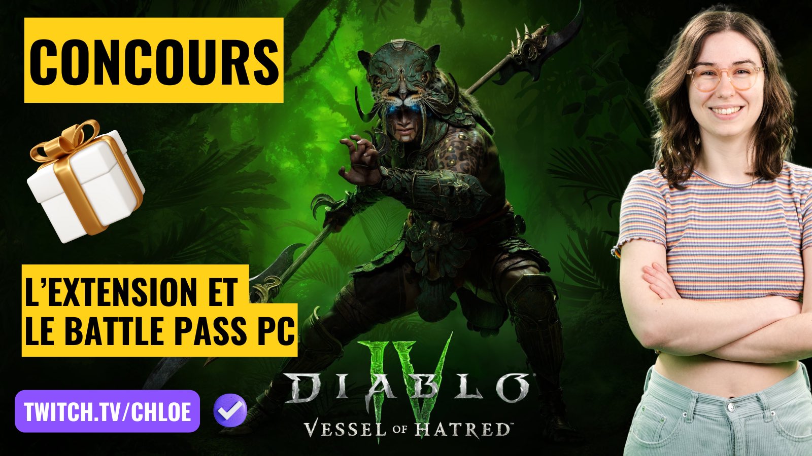 Jeu Chloe Twitch n°414150 pour gagner 1 lot composé de 1 extension du jeu vidéo Diablo IV : Vessel of Hatred + 1 battle pass sur PC