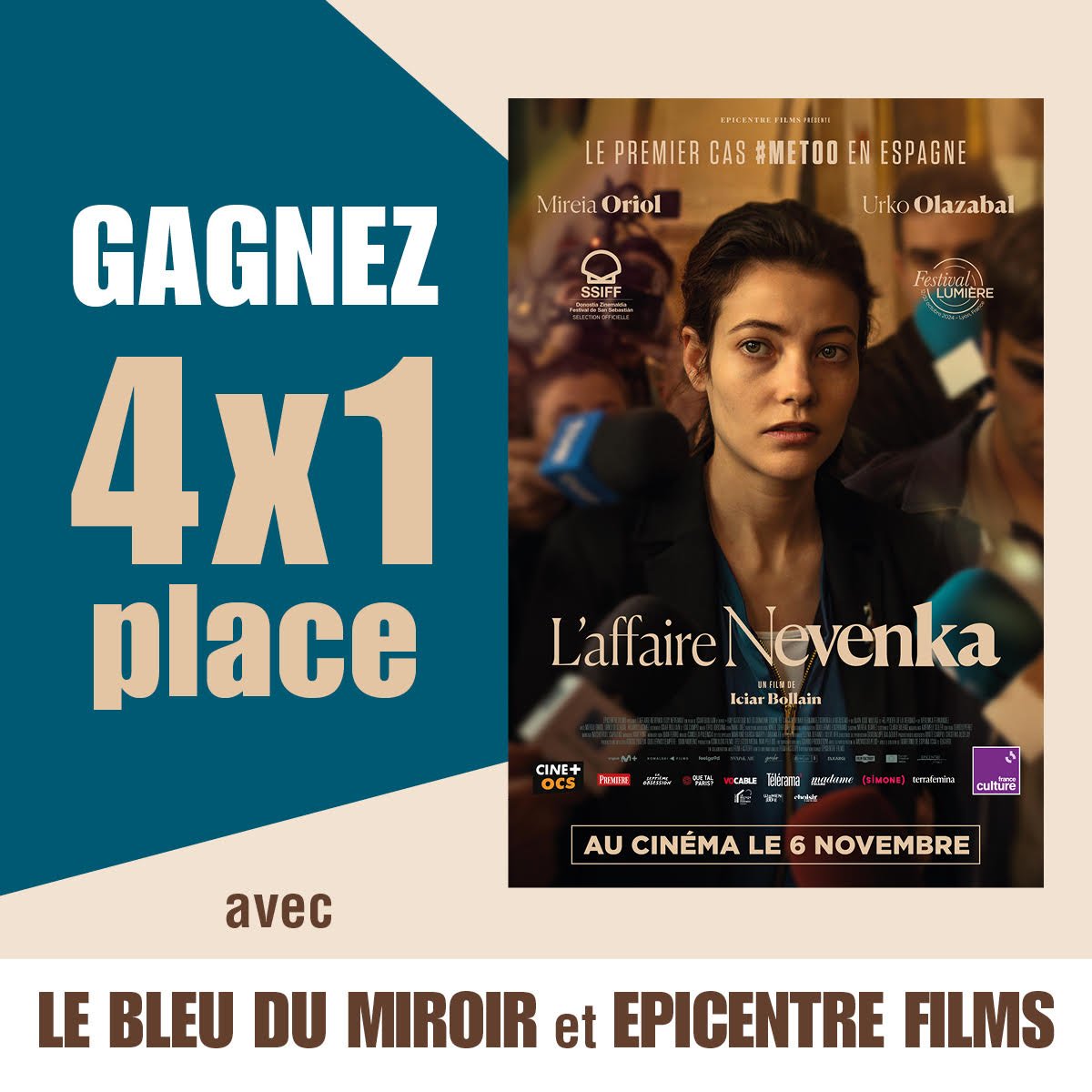 Jeu Le Bleu du Miroir n°414783 pour gagner 4 places de cinéma pour le film L'Affaire Nevenka