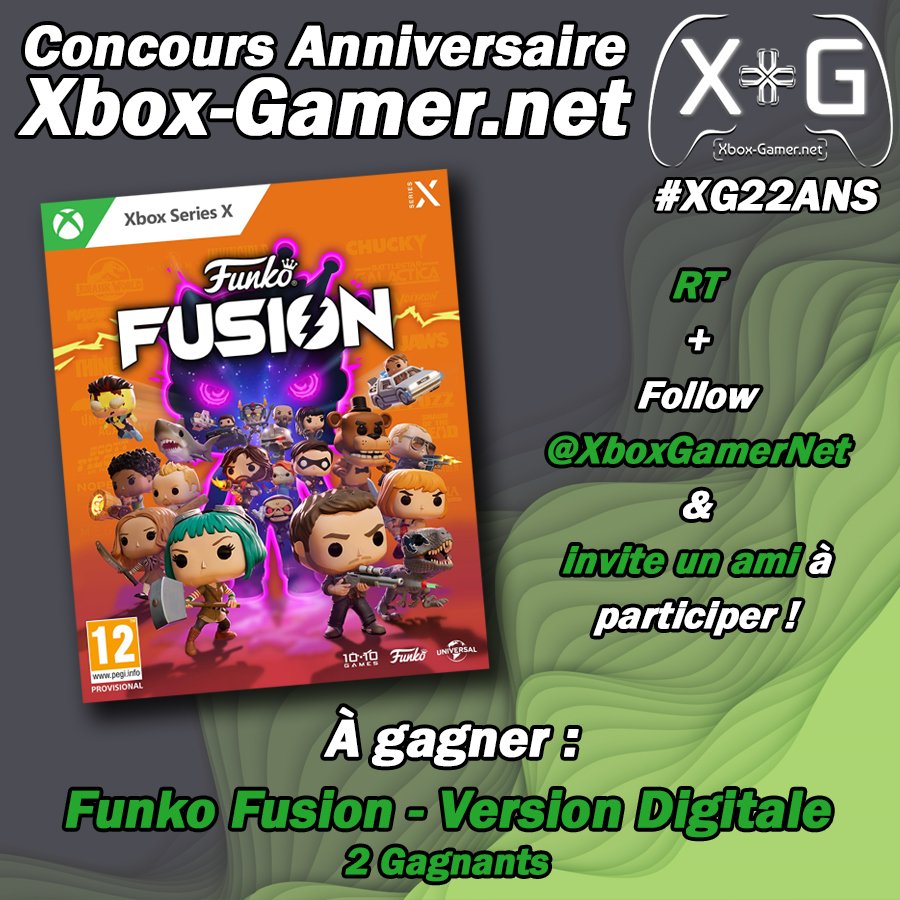 [#XG22Ans] On continue de fêter nos 22 ans avec cette fois ci @1010Gamesltd qui nous offre l'opportunité de faire gagner 2 Funko Fusion (et son DLC Walking Dead Pack) 🟢 Pour participer : - RT & Follow @XboxGamerNet - Invite un ami en commentaire Fin du concours le 17/11 à