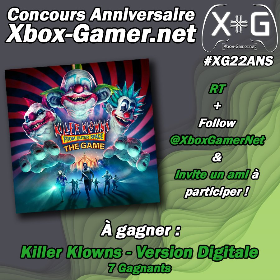 [#XG22Ans] Et un nouveau concours, cette fois-ci orchestré par @IllFonic ou nous vous proposons de gagner 7 clés de @klownsthegame ! 🟢 Pour participer : - RT & Follow @XboxGamerNet - Invite un ami en commentaire Fin du concours le 22/11 à 23h59