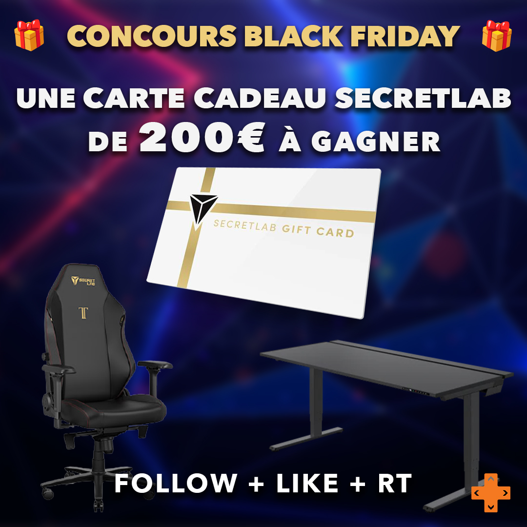 🎁 CONCOURS 🎁 Profitez des offres Black Friday chez Secretlab avec cette carte cadeau exclusive d'une valeur de 200€. Économisez jusqu'à 100€ sur les chaises TITAN Evo et 139€ sur les bureaux MAGNUS Pro. Pour participer : ⇒ Follow @Gameblog et @secretlabchairs ⇒ Like+RT