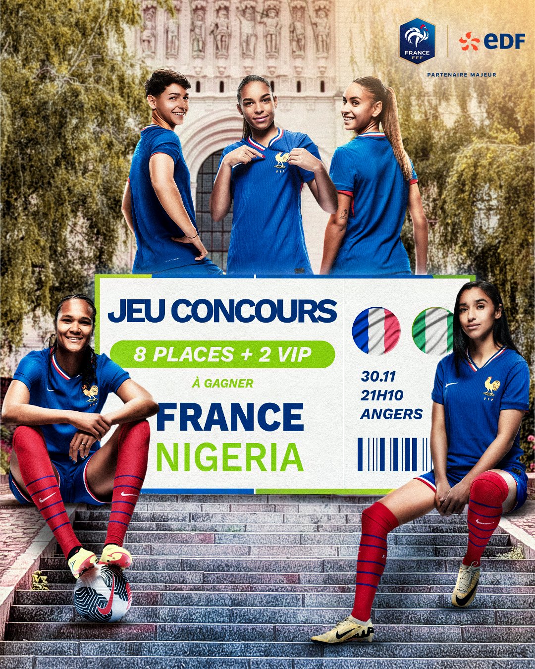 Jeu Energie du Foot n°416311 pour gagner 5 x 2 invitations pour le match de foot féminin France / Nigéria le 30 novembre à Angers