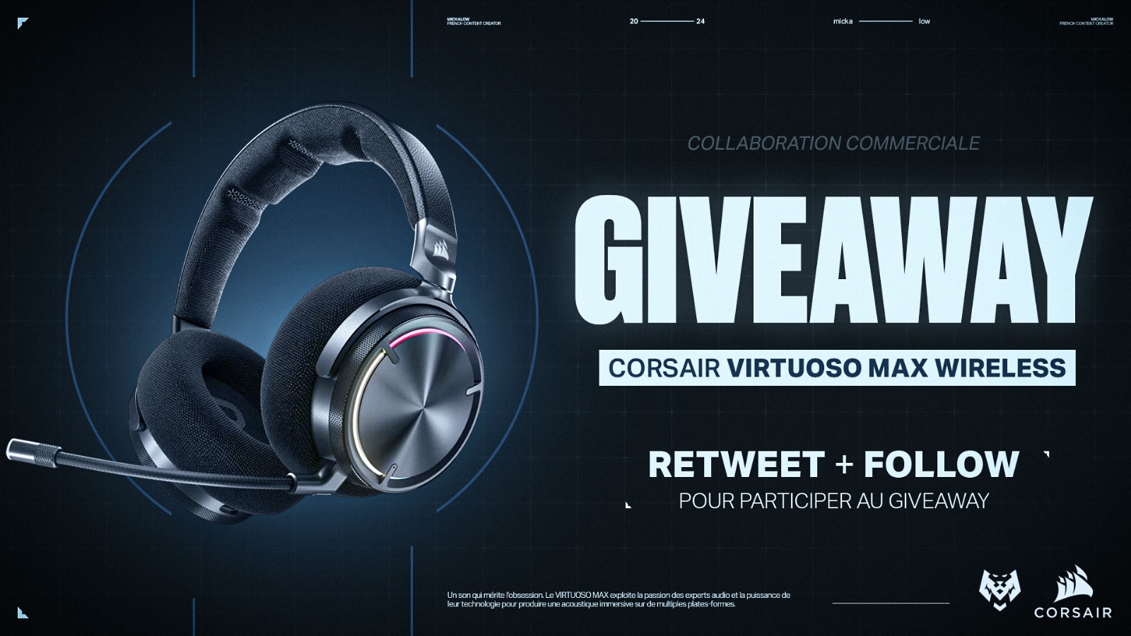 Corsair vous fait gagner un VIRTUOSO MAX WIRELESS 🫶 Pour participer : RT & Follow @CORSAIRFRA @Mickalow Tirage au sort le 03/12 Publicité