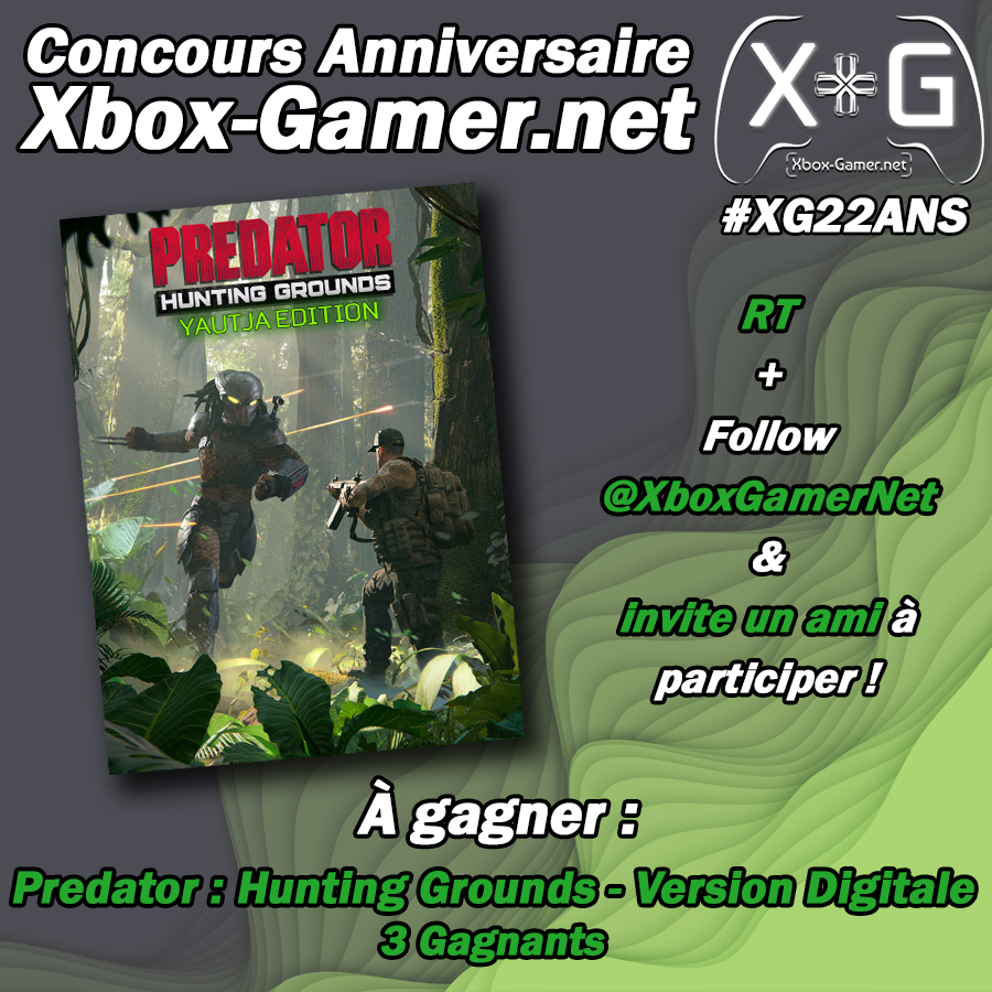 [#XG22Ans] En partenariat avec @IllFonic, nous avons le plaisir de vous faire gagner 3 exemplaires numériques de Predator : Haunting Ground en édition Yautja. 🟢Pour participer : - RT & Follow @XboxGamerNet - Invite un ami Fin du concours le 15/12 à 23h59