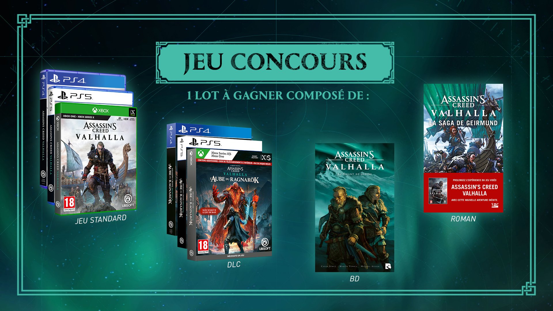 Jeu Ubisoft n°418161 pour gagner 1 lot composé des jeux vidéo et livres de la license Assassin's Creed Valhalla