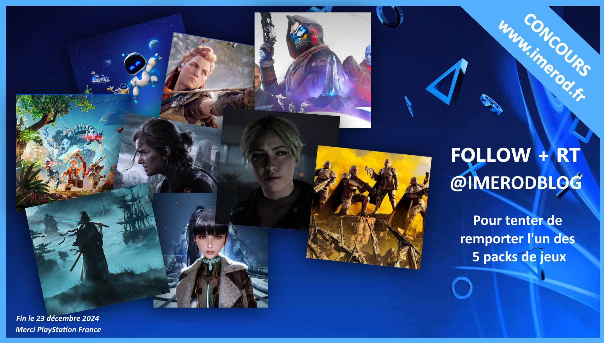 🎁CONCOURS 12ème anniversaire du blog🎁 Avec @PlayStationFR on vous offre 12 jeux PS5 ! Pour participer : - FOLLOW + RT @imerodBlog - Choisis un pack (détail tweets suivants) - Mentionne un pote en commentaire 🍀TAS le 23/12/2024