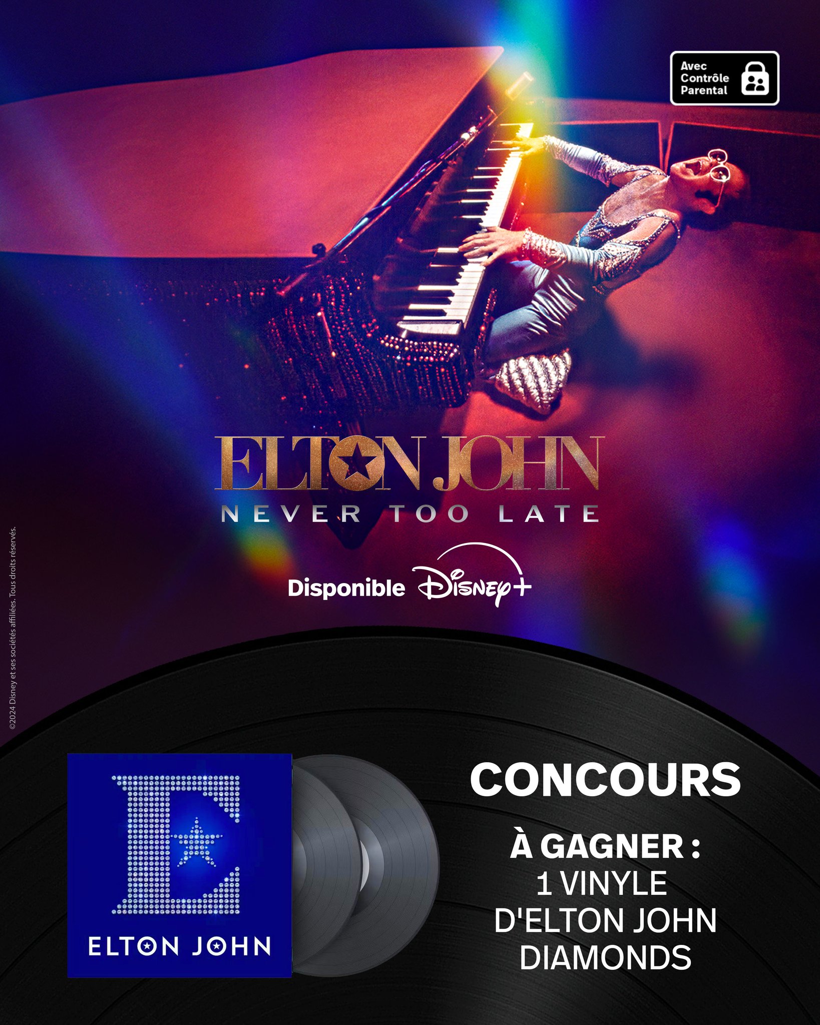 Concours 🎁 Avec la sortie du documentaire Elton John: Never Too Late sur #DisneyPlus, on vous propose de RT pour tenter de remporter le vinyle d'Elton John, Diamonds ! 💿
