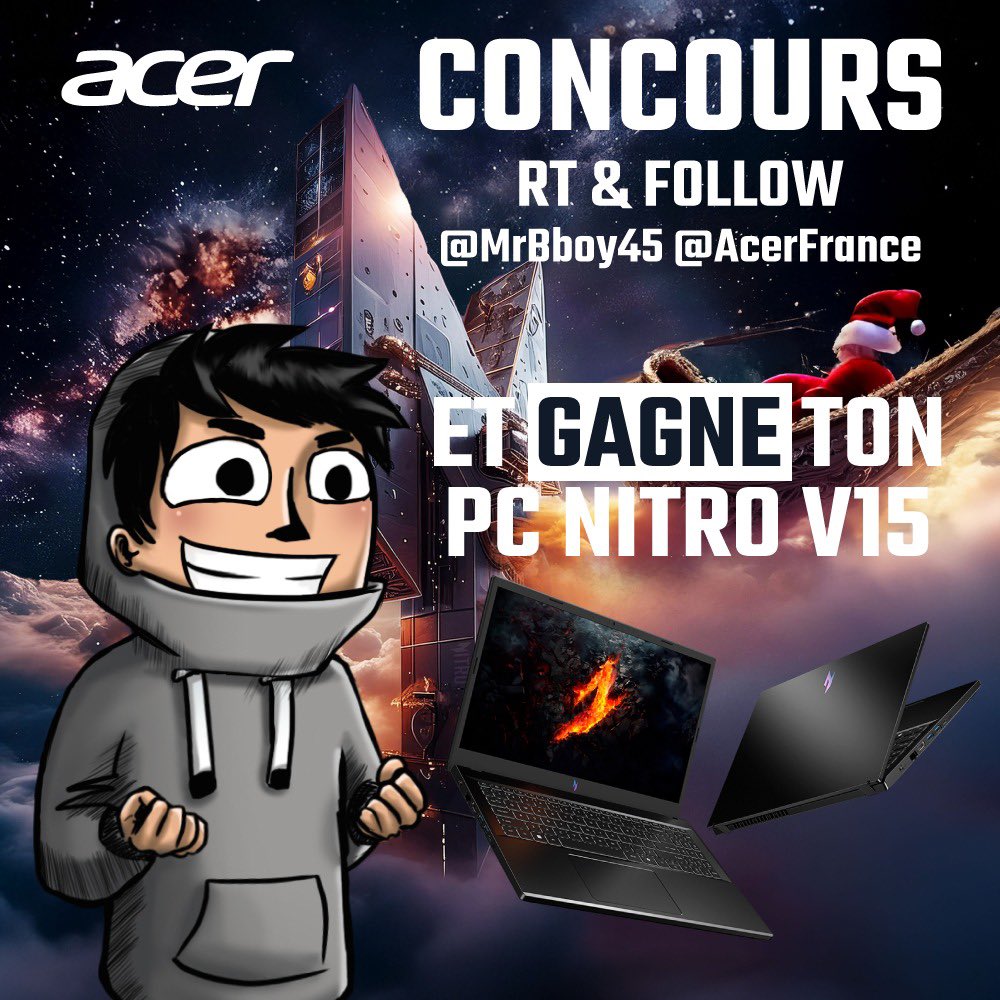 🎁🎄 CONCOURS NOËL #6 🎄🎁 Gagne ton PC PORTABLE NITRO V15 by @AcerFrance 😍 Et rend ta fin d’année 2024 exceptionnelle 🥳🎉🎉 Il suffit de: - #RT ce tweet - Follow @AcerFrance & Moi même ! Mardi 1 Janvier 2025