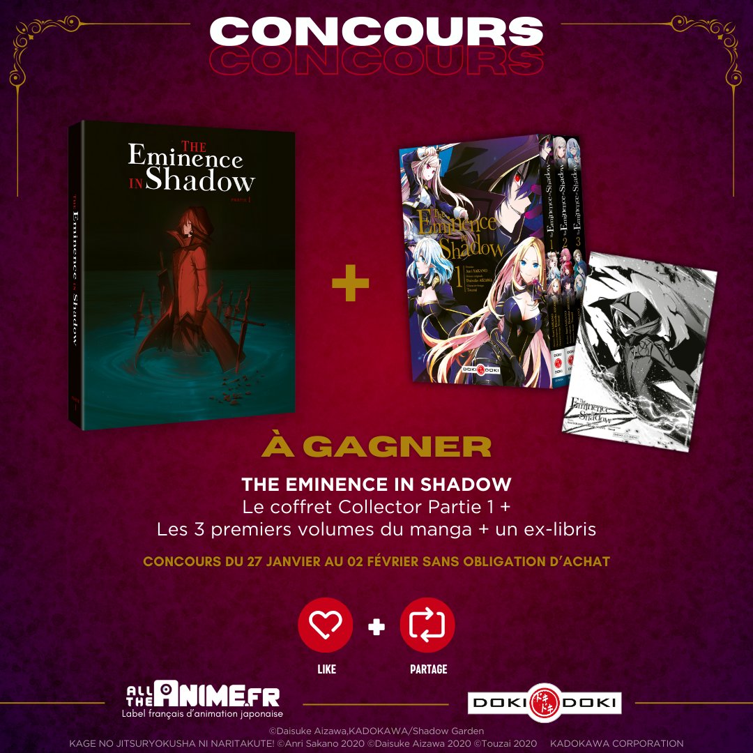 Jeu All the Anime n°420996 pour gagner 1 lot composé de 1 coffret Blu-ray The Eminence in Shadow + 3 mangas + 1 ex-libris
