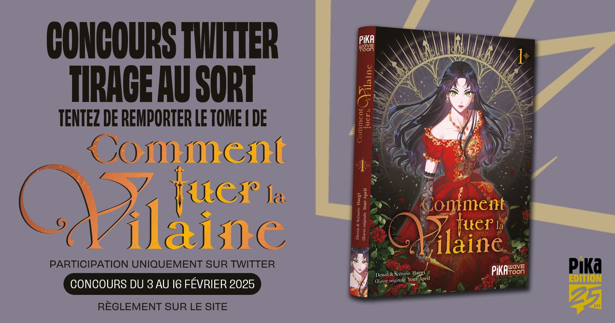 [CONCOURS] ⭐ À l'occasion de la sortie du tome 1 de Comment tuer la vilaine, nous vous proposons un jeu-concours pour tenter de remporter un exemplaire du tome ! ⭐ Pour participer : 1️⃣Abonnez-vous à @pikaedition 2️⃣ Likez et repostez ce post🔁 Bonne chance à tous !