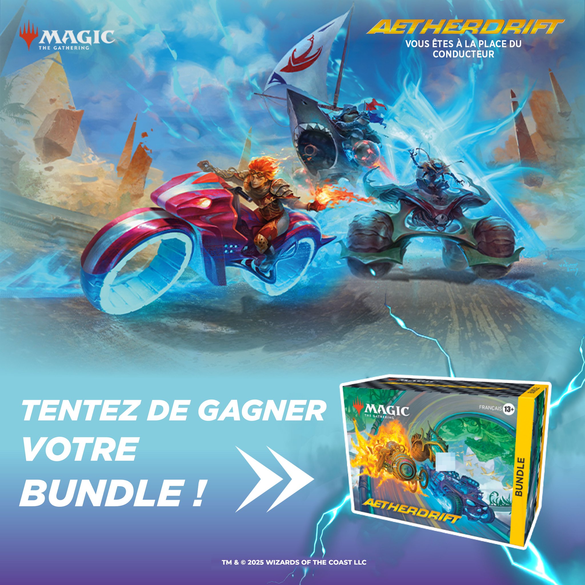 Aetherdrift, la nouvelle extension Magic: The Gathering, débarque aujourd'hui dans nos magasin 🔥 Pour l'occasion, on vous propose de gagner un Bundle ⤵️ 🏁 Like⁣⁣⁣, RT & Follow @Micromania_Fr 🏁 Mentionner en réponse un ami avec #MicromaniaMagic Tirage au sort dans 7 jours