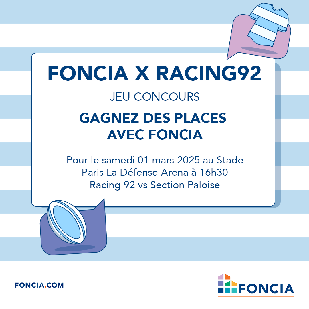 Jeu Foncia n°422891 pour gagner Des invitations pour le match de rugby Racing 92 / Pau le 1er mars à Paris (75)