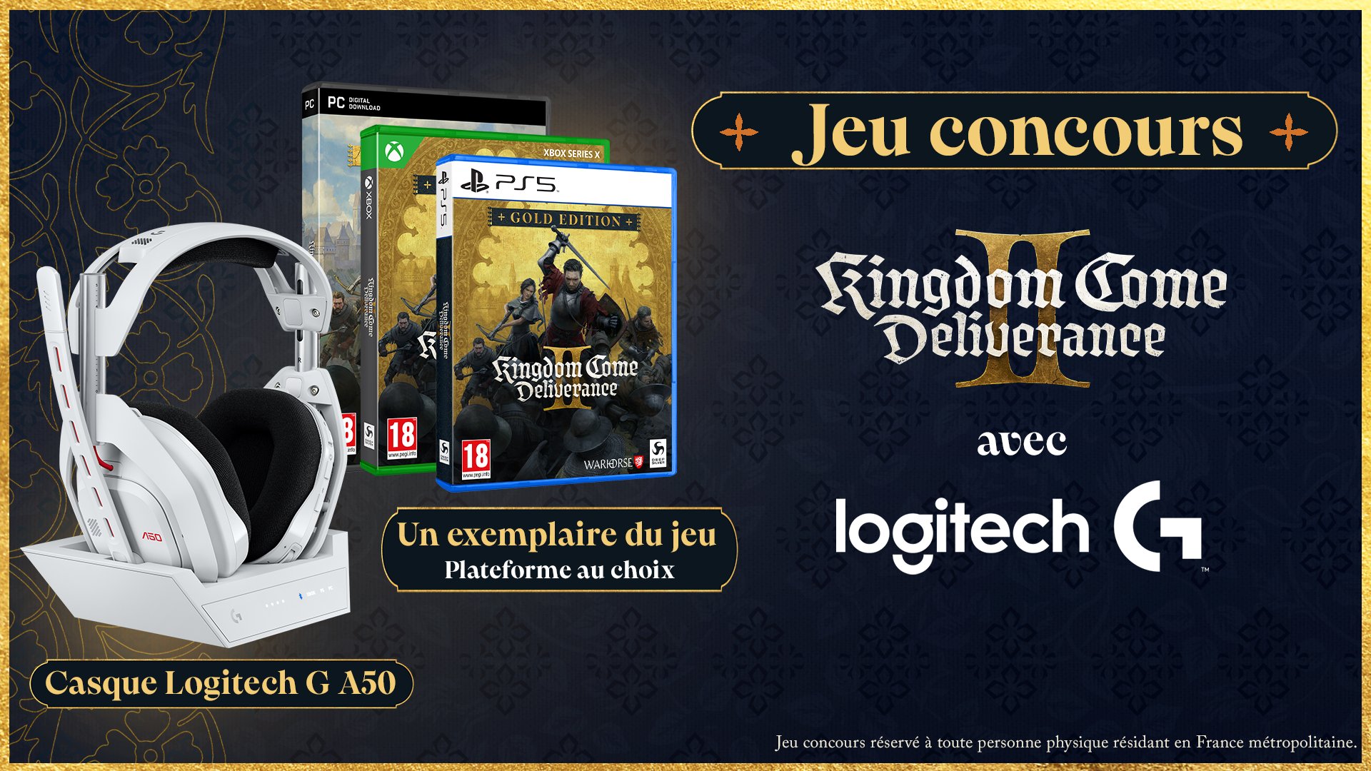 Plongez en immersion totale dans #KCD2 avec le casque A50 de Logitech G! Pour participer : ✅ Follow les comptes @PLAION_FR et @LogitechGFrance 🔁 RT ce tweet 1 gagnant TAS le 14/03 🍀