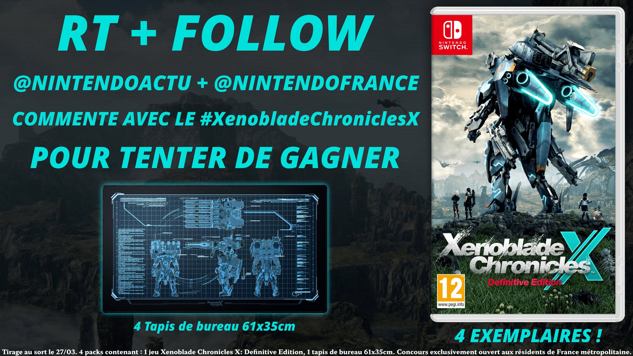• 4 lots composés de 1 jeu vidéo "Xenoblade Chronicles X: Definitive Edition" + 1 tapis de bureau