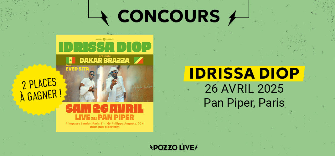 Jeu Pozzo Live n°426740 pour gagner 3 x 2 places pour le concert de Idrissa Diop le 26 avril à Paris (75)
