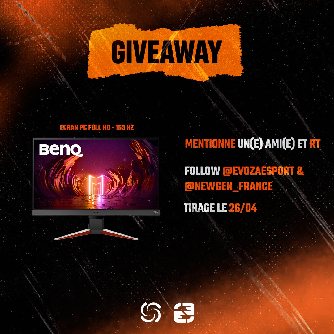 Pour fêter notre partenariat avec New Gen, on vous fait gagner un écran BENQ d'une valeur de 130€ ! 🥳 Pour participer : ・Mentionne un(e) ami(e) et RT ・Follow @NewGen_France & @EvozAEsport Tirage au sort le 26/04.