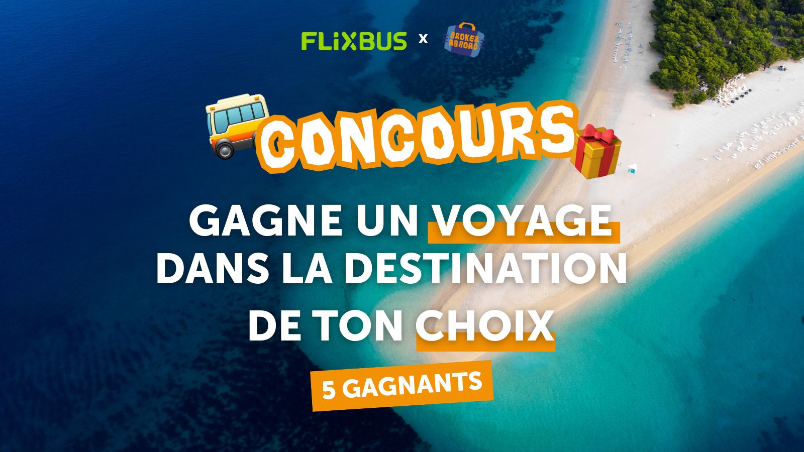 Jeu Broke & Abroad n°426987 pour gagner 5 billets de bus Flixbus pour une destination au choix