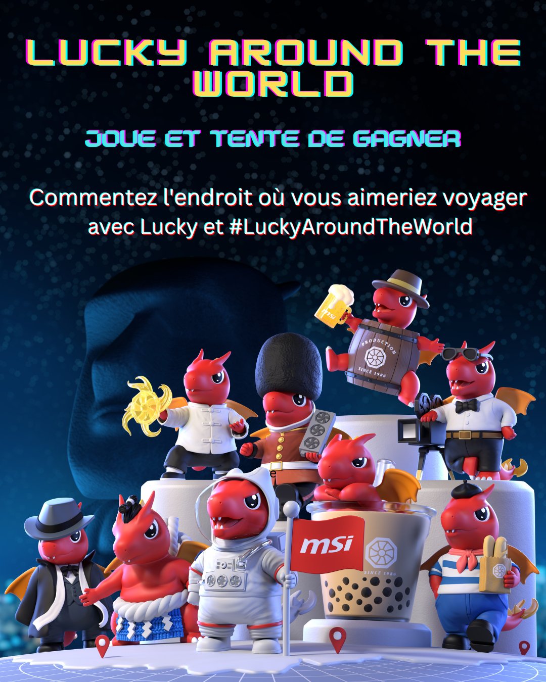 Concours 👀 Jusqu'au 31/05, tente de gagner les figurines Lucky édition limitée ou une tirelire ! 🔄 Follow @msifrance & RT 💬 Commente le lieu où tu veux voyager avec une photo de notre mascotte Lucky 💬 Ajoute #LuckyAroundtheWorld Infos > https://t.co/C5ouesF05R