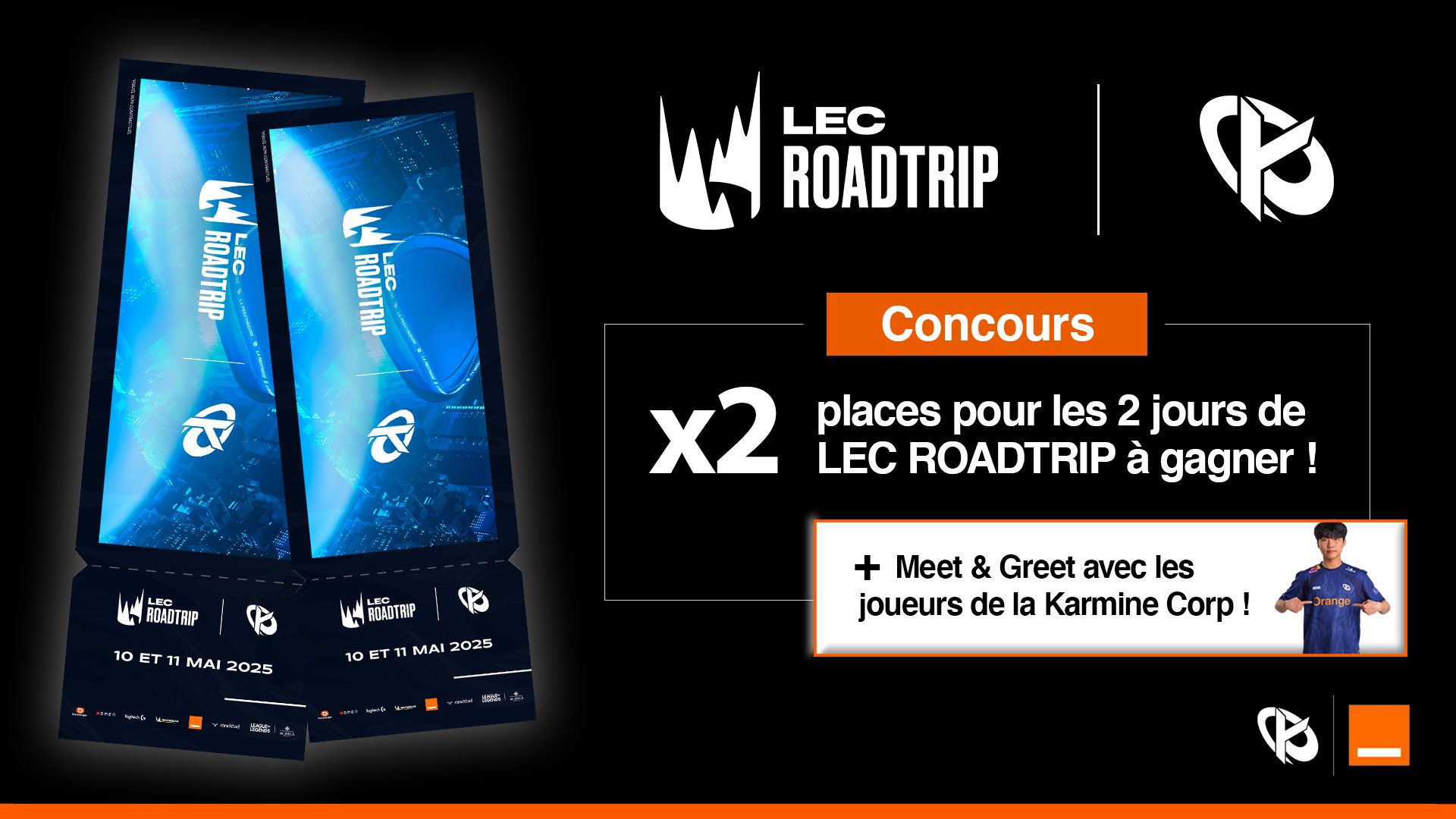 • 1 lot de 2 packs 2 jours au Meet & Greet avec les joueurs de la Karmine Corp les 10 et 11 mai à Evry