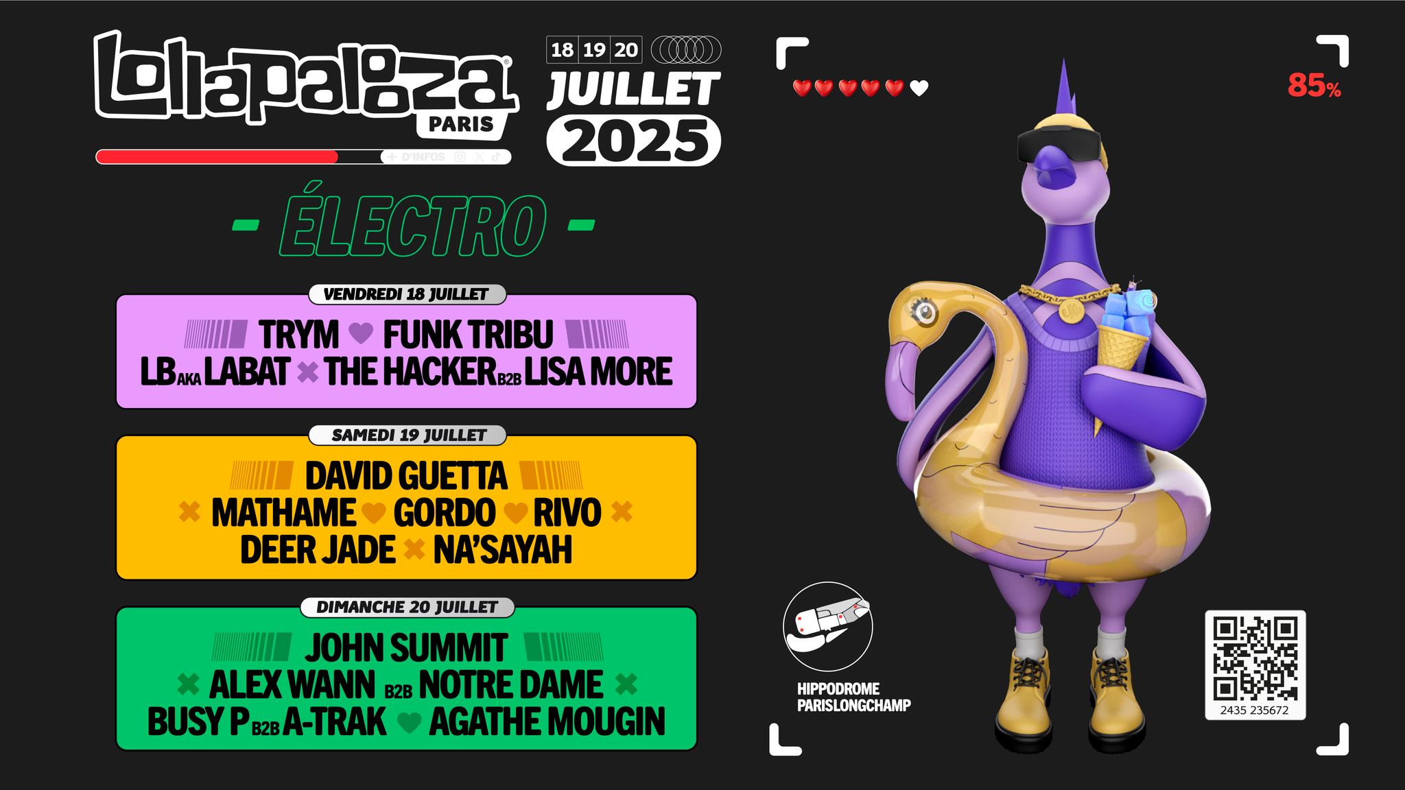 • 1 lot de 2 invitations pour le festival Lollapalooza les 19 et 20 juillet à Paris (75)