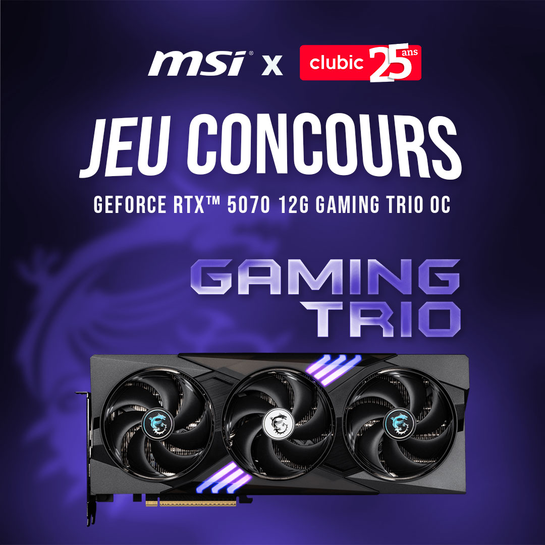 • 1 carte graphique MSI GeForce RTX 5070 Gaming Trio