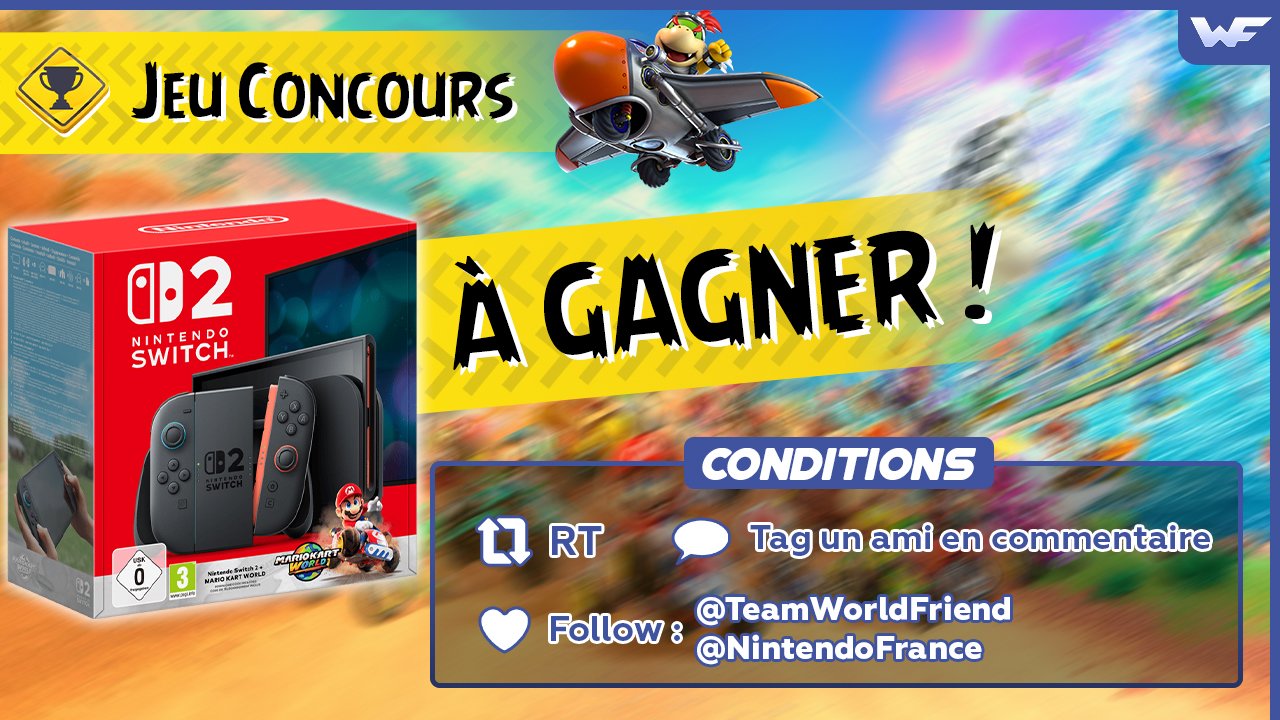🎁 JEU CONCOURS 🎁 Tente de remporter un pack Nintendo Switch 2 + Mario Kart World ! 🏎️ Pour participer : 🔁 RT ce tweet ✅ Follow @NintendoFrance et @TeamWorldFriend 💬 Commente #NintendoSwitch2 et tag un ami avec qui tu vas lancer ta 1re course Tirage au sort le 12/06 !