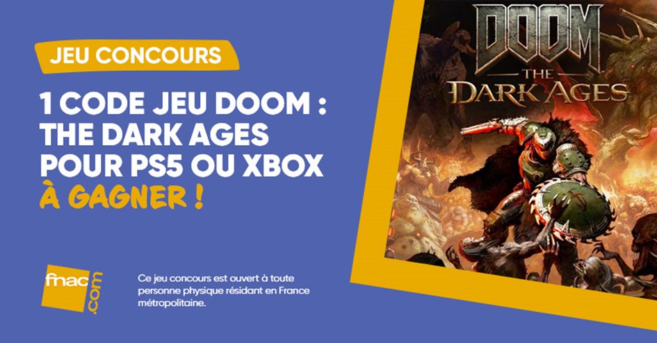 JEU CONCOURS | Gagnez DOOM : The Dark Ages en version digitale 🔥 À l’occasion de la sortie du jeu, tentez de remporter un code digital pour PS5 ou Xbox ! Pour participer : RT + Commentez avec PS5 ou XBOX + Follow @Fnac 📅TAS le 16/06 – 2 gagnants