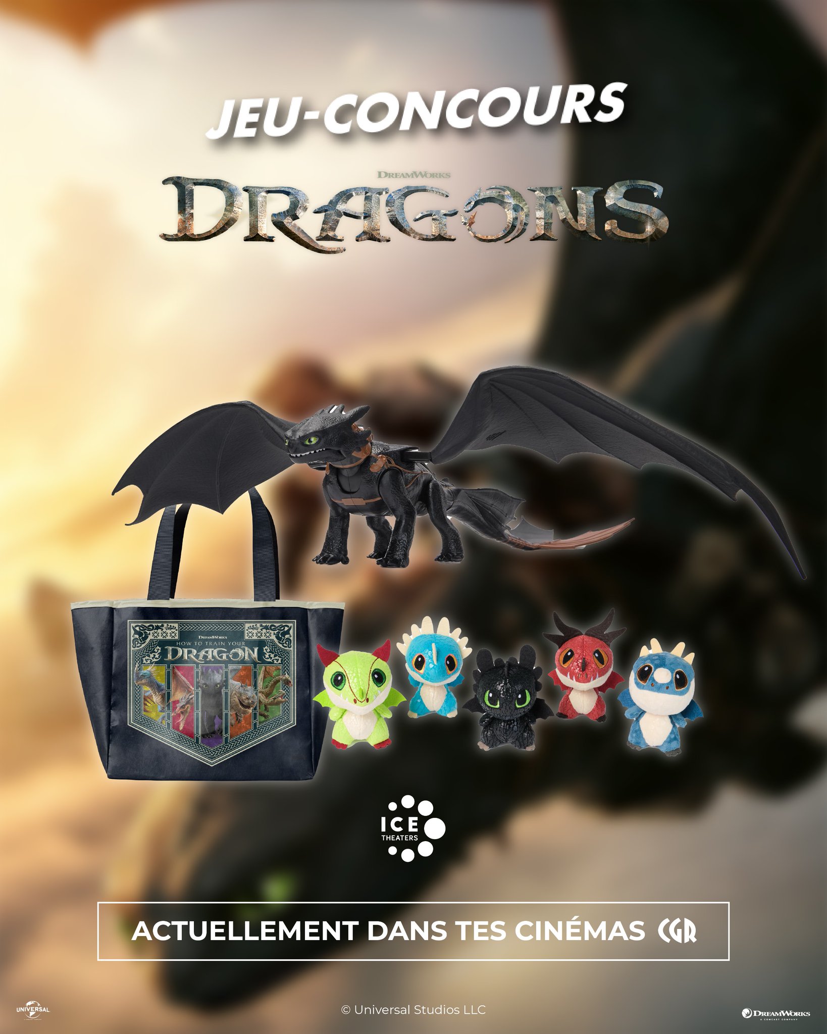 Tente de remporter un pack de goodies à l'effigie du film DRAGONS : 1 sac de plage, une mini peluche dragon (au hasard) et une grande figurine de Krokmou 😍 Pour tenter ta chance : 👉 Suis @cgrcinemas 👉 RT le tweet Tirage au sort le 19/06 #JeuConcours #DragonsLeFilm