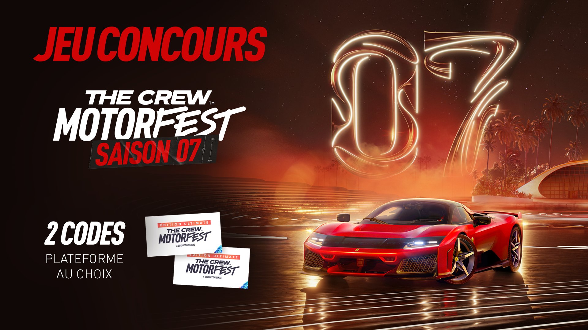 Jeu Ubisoft n°433029 pour gagner 2 codes du jeu vidéo The Crew Motorfest saison 7 en version Édition Ultimate