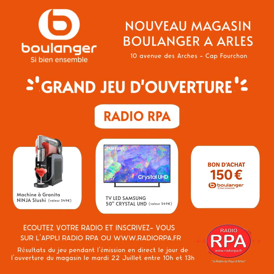 • 1 bon d'achat "Boulanger" de 150 euros valable à Arles