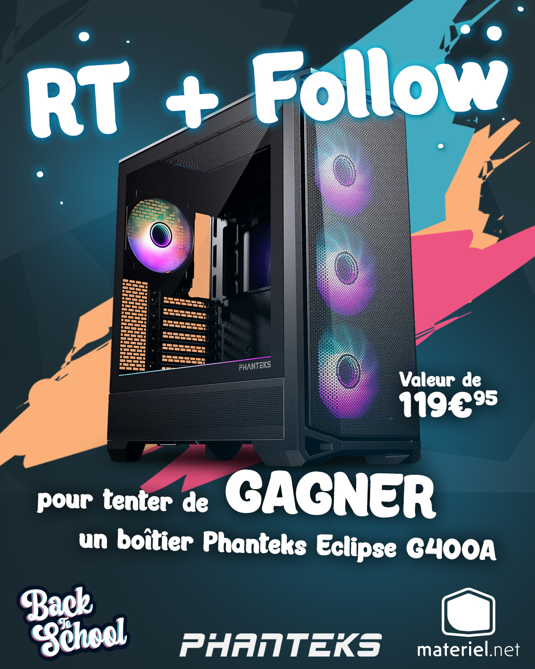 🎁 𝐂𝐎𝐍𝐂𝐎𝐔𝐑𝐒 #BackToSchool 🎁 RT + Follow pour tenter de remporter le boîtier vitré @Phanteks Eclipse G400A, équipé notamment de 4 ventilateurs 140 mm ARGB 🌈 🎰 01/09/2025 🍀 Bonne chance à toutes & tous ! 👉 https://t.co/Ee8pjHUrr2