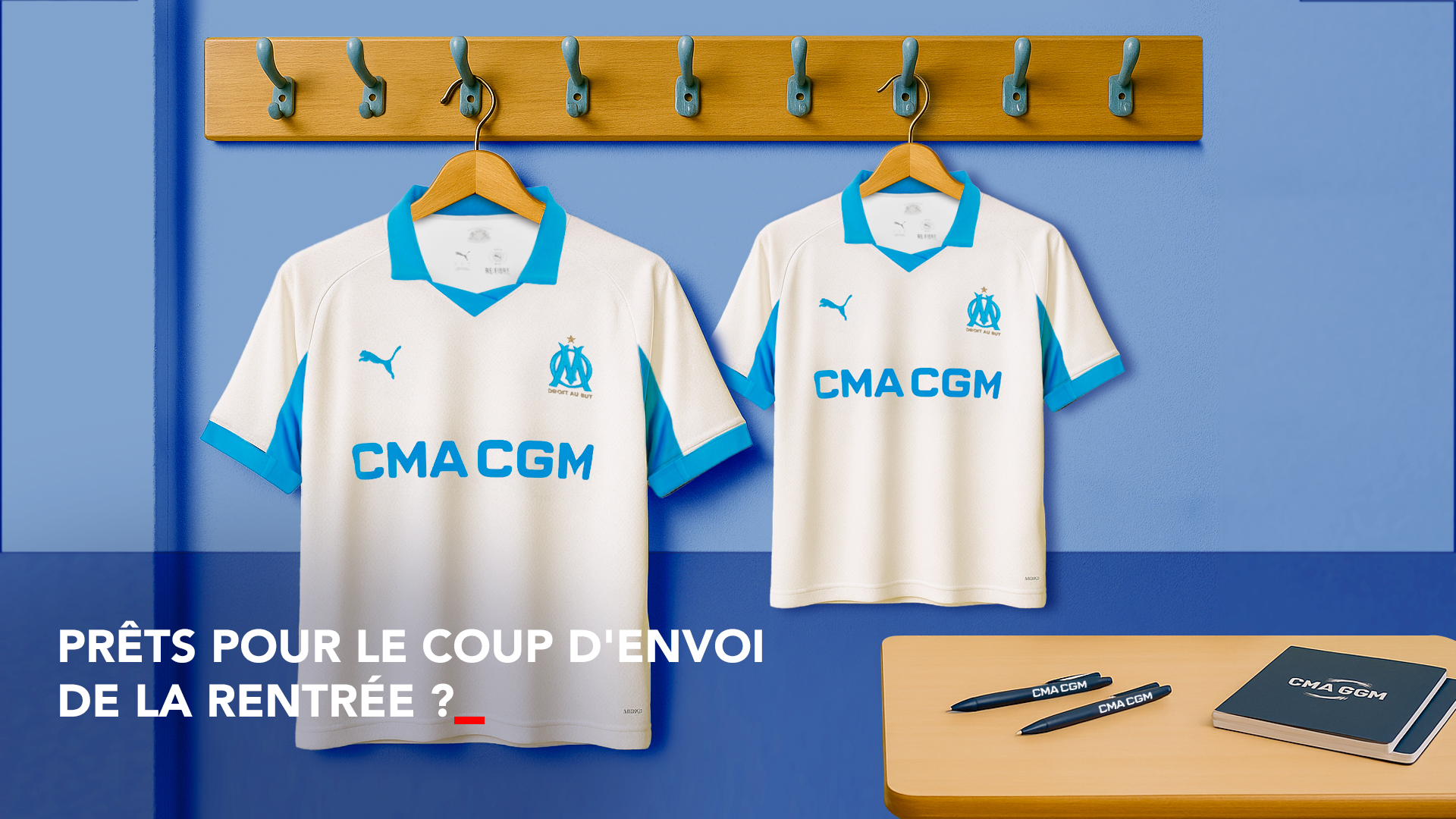 Jeu CMA CGM n°436420 pour gagner 5 lot composés de 2 maillots de foot OM adulte et enfant + des goodies