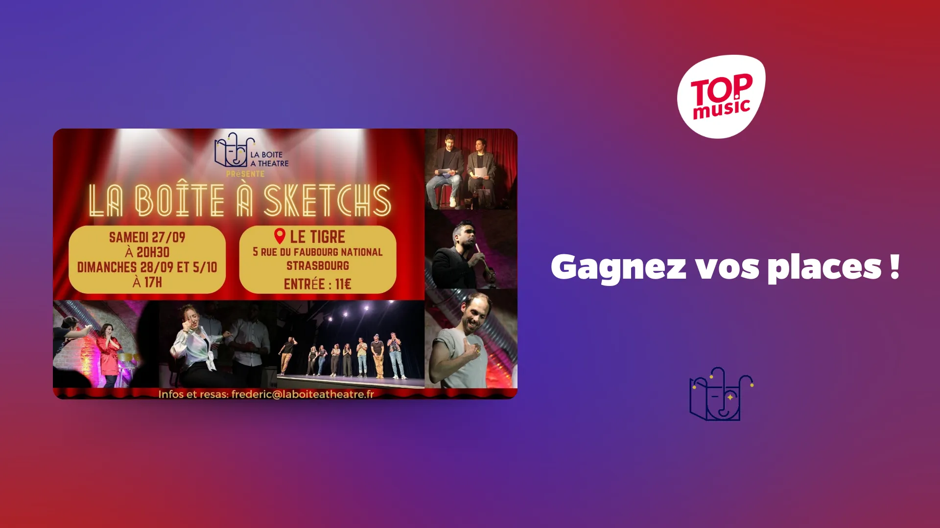 Jeu Top Music n°438686 pour gagner Des invitations pour le spectacle La Boîte à Sketchs le 5 octobre à Strasbourg (67)