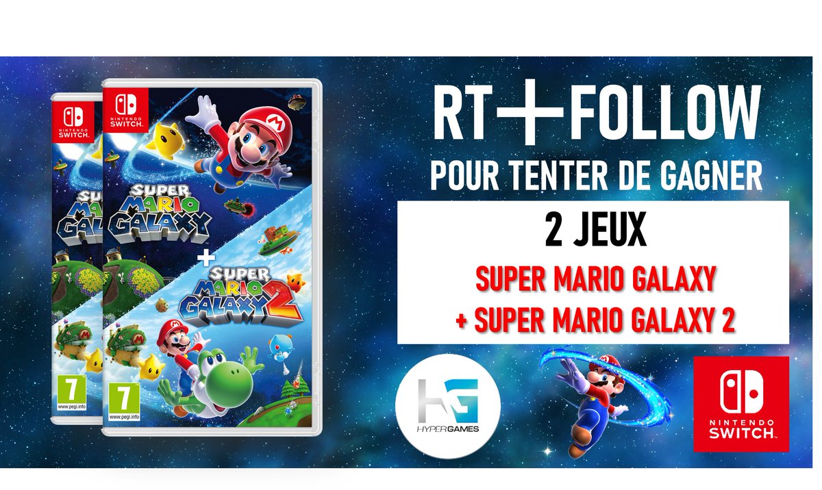 A l'occasion de la sortie de Super Mario Galaxy + Super Mario Galaxy 2, Tente de remporter un exemplaire du jeu! ➡️RT+Follow @HypergamesA ➡️Like+Commente avec le #SuperMarioGalaxy2 TAS le 09/10/2025 2 Gagnant(e)s Règlement:https://t.co/KYsjVqm1J6