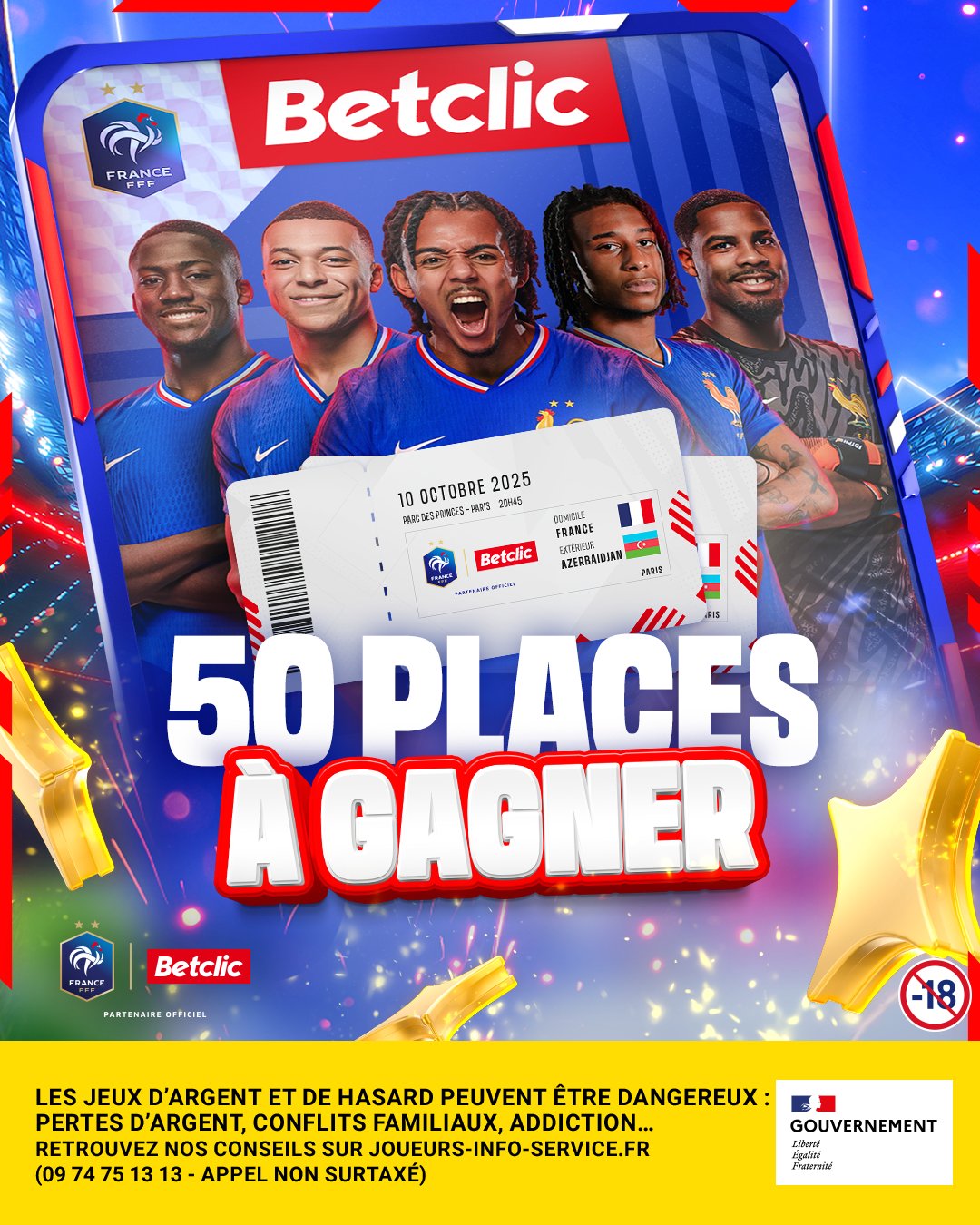 Jeu Betclic n°439450 pour gagner 25 x 2 invitations pour le match de football France / Azerbaïdjan le 10 octobre à Paris (75)