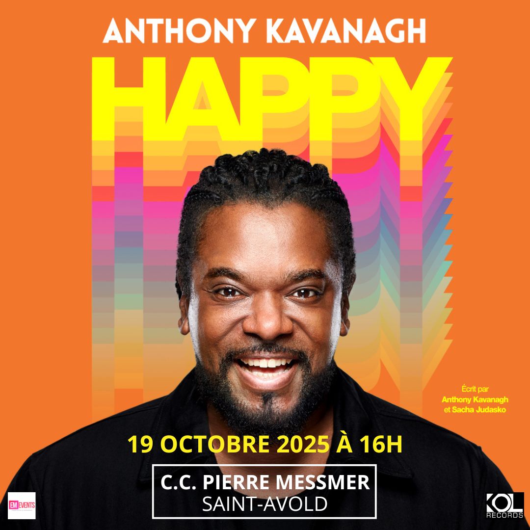 • Des invitations pour le spectacle "Happy" d'Anthony Kavanagh le 19 octobre à Saint-Avold (57)