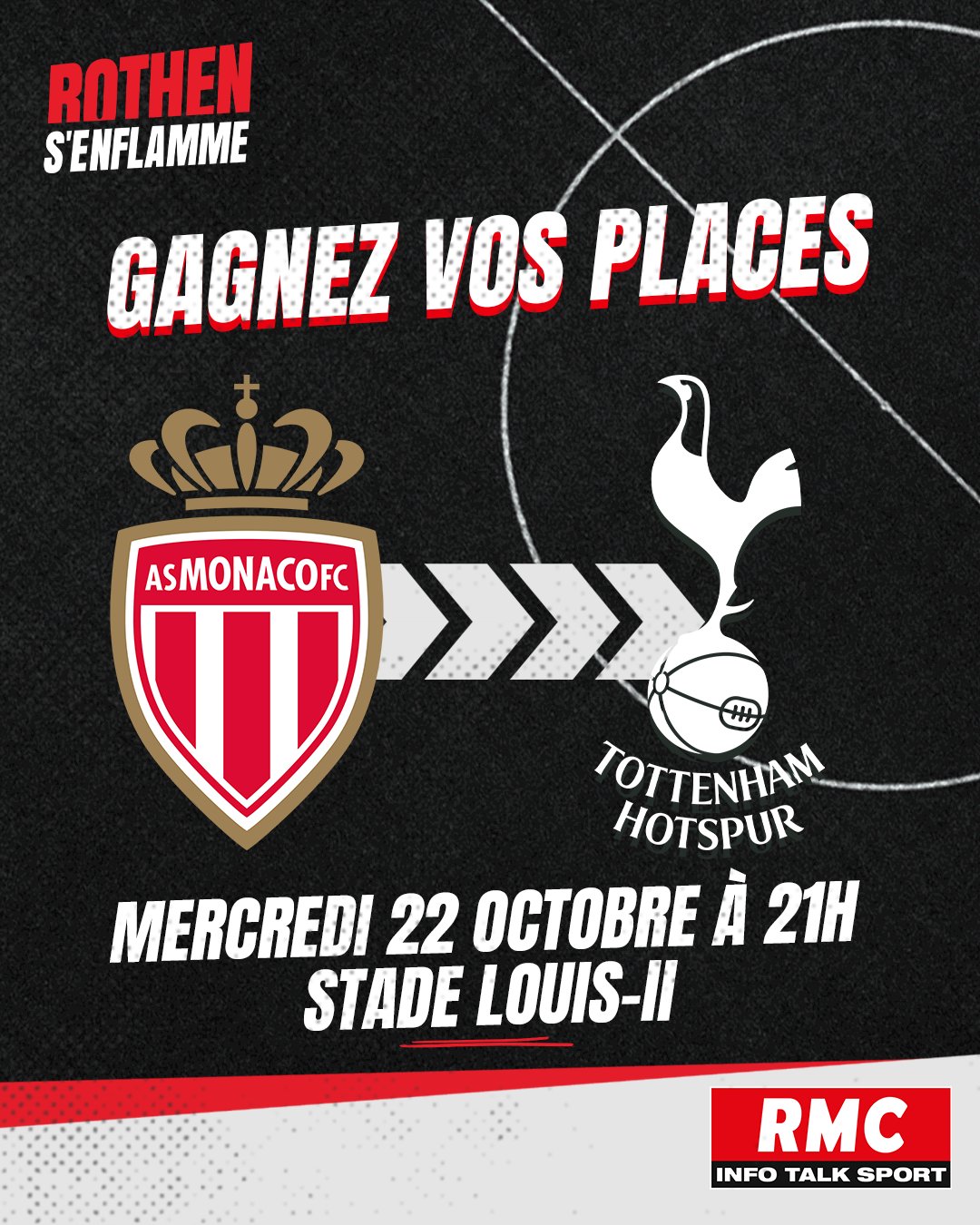 🎁 JEU CONCOURS 🎟️ Tentez de remporter vos places pour le match Monaco - Tottenham en Ligue des Champions, qui aura lieu le mercredi 22 octobre à 21h. 🍀 Pour participer, RT + Follow @Rothensenflamme, et commente ton prono. Bonne chance !