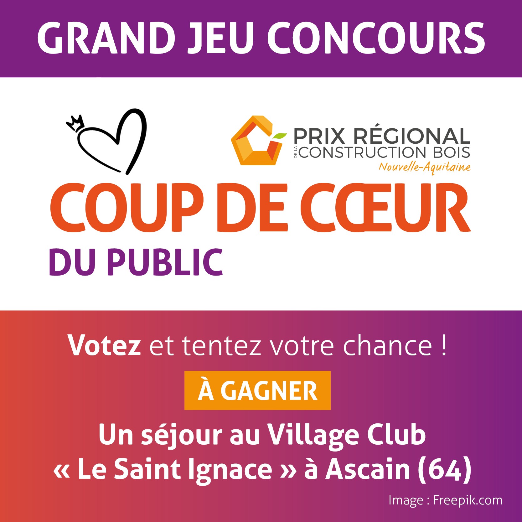 Découvrez les lauréats du Prix Régional de la Construction bois 2025 et votez pour votre coup de cœur jusqu’au 20 novembre 2025 ! *** Vous participez ainsi au tirage au sort pour tenter de gagner un week-end de 2 nuits en demi-pension pour 2 personnes & 2 enfants au Village Club « Le Saint Ignace » à […]