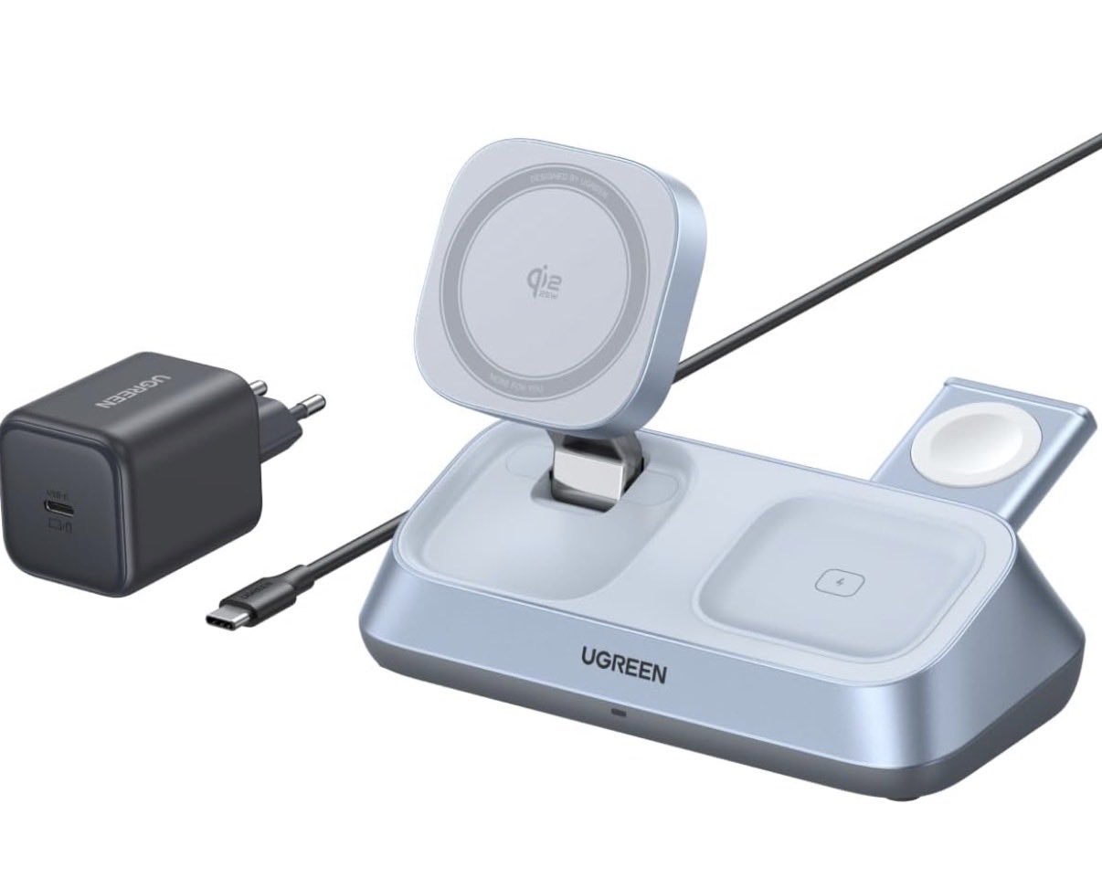 • 1 station de charge 3-en-1 Ugreen MagFlow Qi2 25W