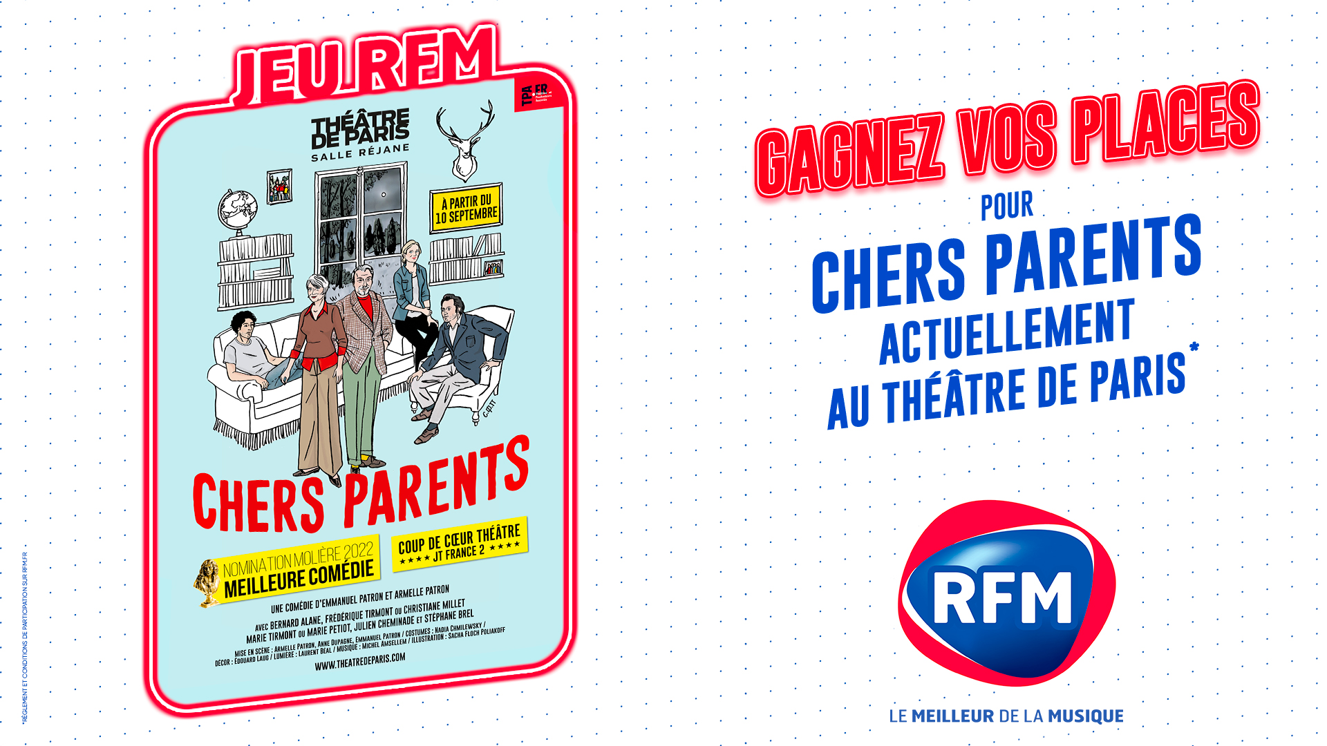 La pièce de théâtre "Chers Parents" est de retour sur la scène du Théâtre de Paris pour une 5ème saison en partenariat avec RFM. A cette occasion, tentez de gagner vos places !