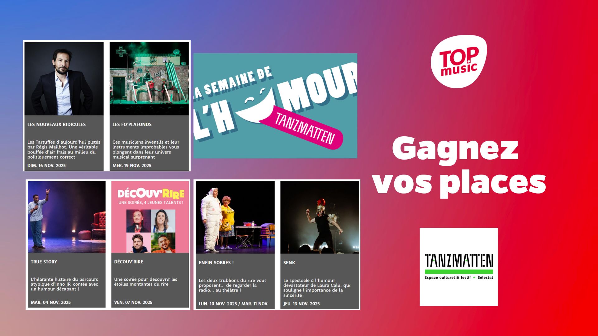 Jouez sur topmusic.fr pour gagner des invits pour un spectacle "Semaine de l'humour aux Tanzmatten"