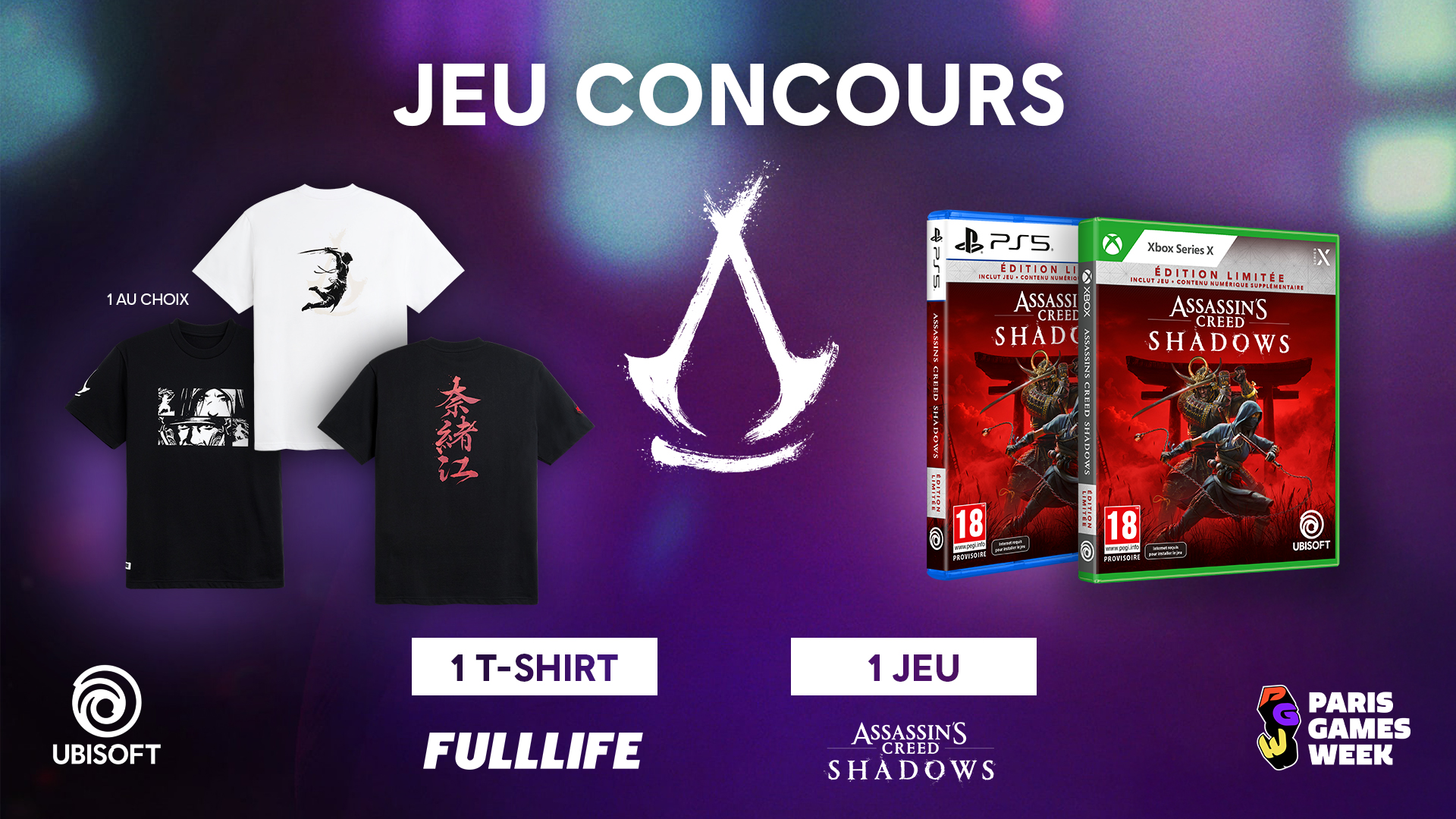 🎁 JEU CONCOURS #UBIPGW 🥷 La Paris Games Week est bientôt finie, heureusement la collection Fulllife x Assassin's Creed Shadows, elle, est toujours dispo ! 🦅 Pour tenter de gagner un t-shirt (modèle au choix) + un jeu : ❤️ Like le post 🎮 Commente avec ta plateforme de jeu ✔️