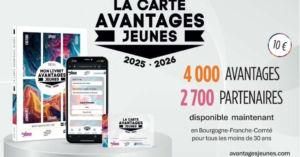 • 1 carte "Avantages Jeunes 2025-2026" pour les moins de 30 ans de Bourgogne-Franche-Comté