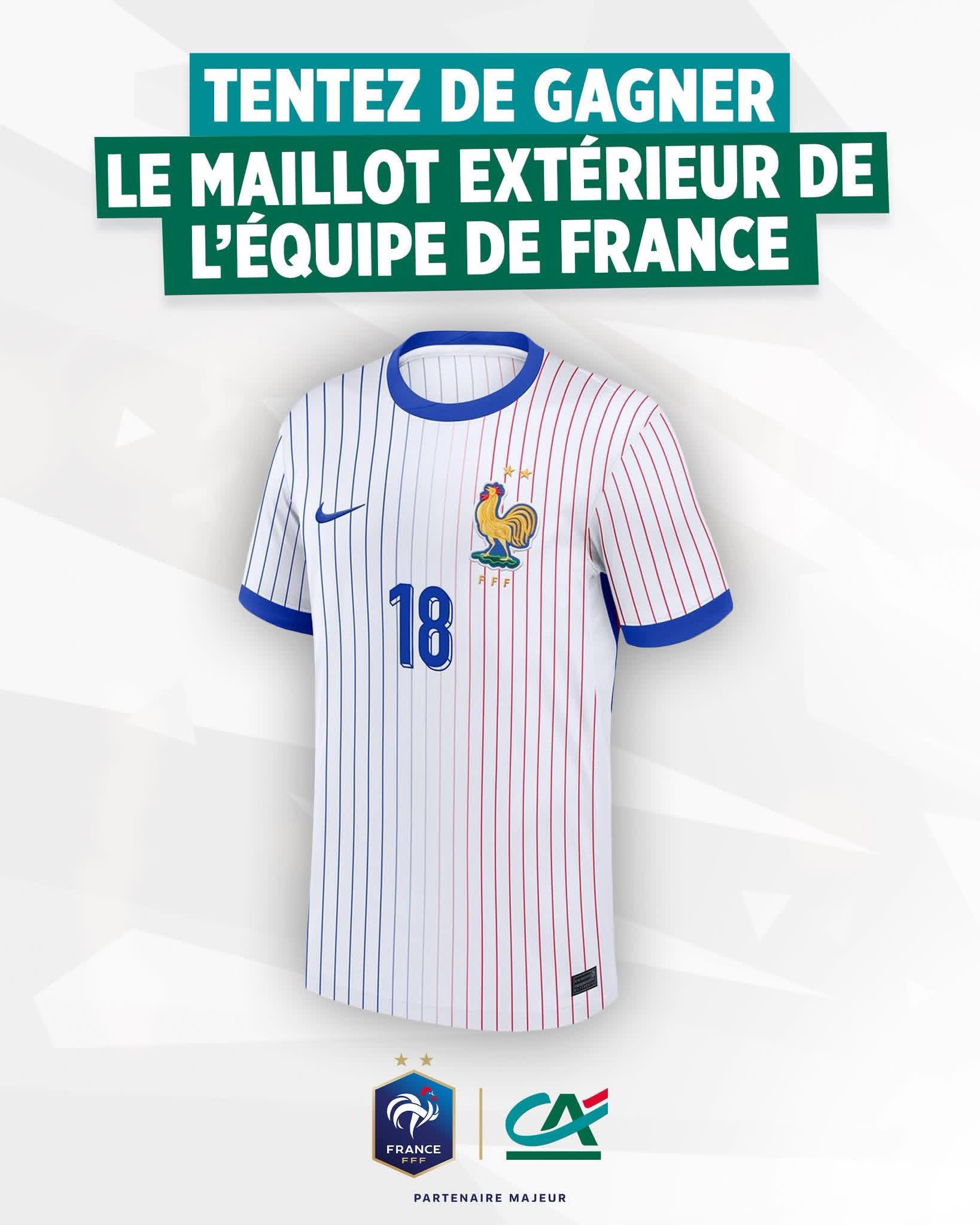 On vous fait gagner un maillot domicile de l’@equipedefrance 👕🇫🇷 𝘗𝘰𝘶𝘳 𝘵𝘦𝘯𝘵𝘦𝘳 𝘷𝘰𝘵𝘳𝘦 𝘤𝘩𝘢𝘯𝘤𝘦 : 🔄 RT + FOLLOW @tousuncotefoot 🖊️ Indique ta taille en commentaire (Un gagnant sera tiré au sort parmi toutes les participations. 🍀 Fin du jeu vendredi à 23h59)