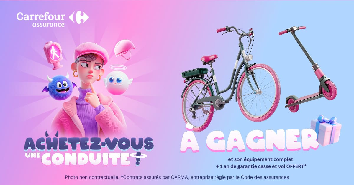 Gagnez un vélo électrique ou une trottinette électrique, équipés avec Carrefour Assurance