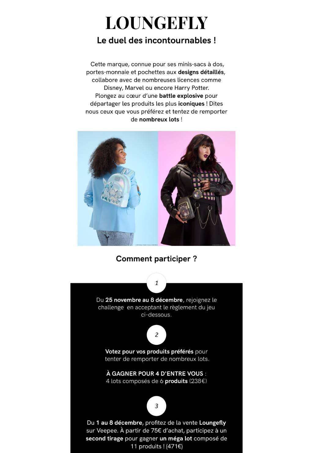 Jeu Veepee n°444825 pour gagner 4 assortiments de 6 produits Loungefly (238 euros)