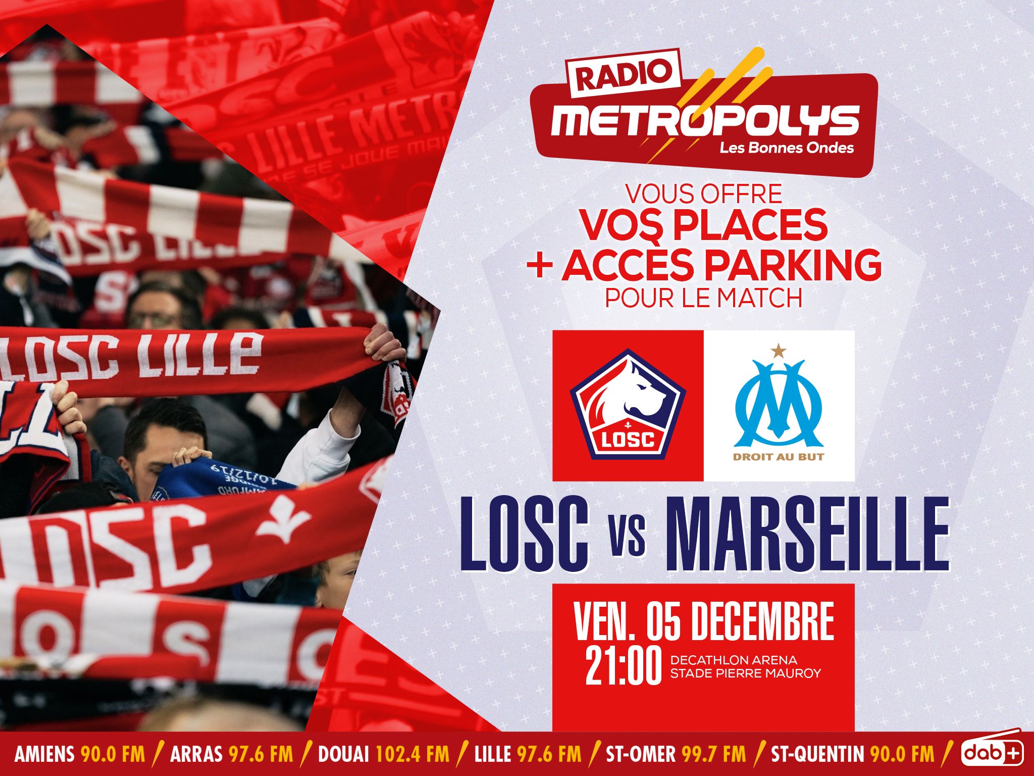 Jeu Metropolys n°445781 pour gagner 1 lot de 2 invitations pour le match de foot LOSC / Marseille le 05 décembre à Lille (59)