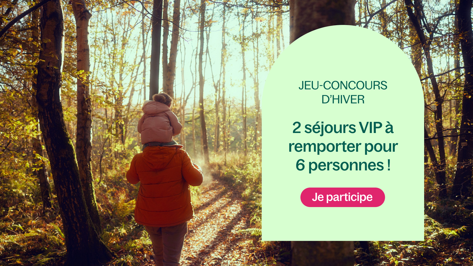 Participez pour gagner l'un des 2 séjours VIP à Center Parcs pour 6 personnes, d'une valeur de 750€ chacun. Une expérience inoubliable vous attend. Jouez dès maintenant!